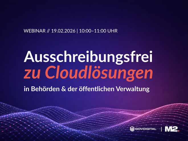 Rechtssicherheit, Geschwindigkeit und Innovation müssen kein Widerspruch sein. Das Webinar zeigt, wie öffentliche Verwaltungen Cloud-Projekte bereits heute rechtssicher initiieren, strukturiert vorantreiben und deutlich beschleunigen können – ohne auf langwierige Ausschreibungen angewiesen zu sein. GovDigital und M2 geben konkrete Einblicke in Beschaffungswege, die es ermöglichen, Innovationsvorhaben jetzt umzusetzen und Projekte nachhaltig voranzubringen. Jetzt anmelden und Handlungsspielräume nutzen.